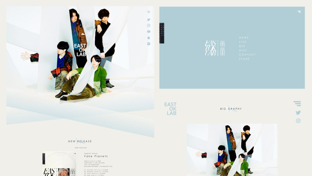 シーンを牽引してきたUK.PROJECTから昨年度セルフタイトルアルバム「EASTOKLAB」をリリースしたEASTOKLAB。彼らの6月3日に発売するニューアルバム「Fake Planets」のビジュアルリニューアルのタイミングで、ウェブサイトのリニューアルを担当した。